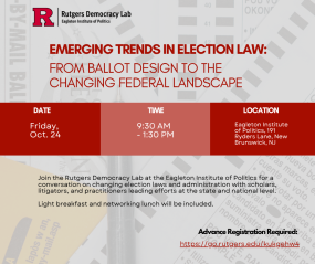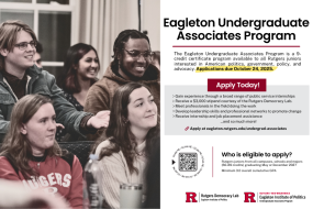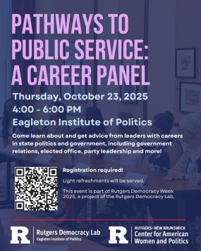 Please add events@eagleton.rutgers.edu as a contact. Unsubscribe Eagleton Institute of Politics, 191 Ryders Lane, New Brunswick, NJ 08901 © 2023, Rutgers, The State University of New Jersey, an equal opportunity, affirmative action institution. All rights reserved.https://peshine.rutgers.edu/civicrm/mailing/unsubscribe?reset=1&jid=&qid=&h=fakehash |